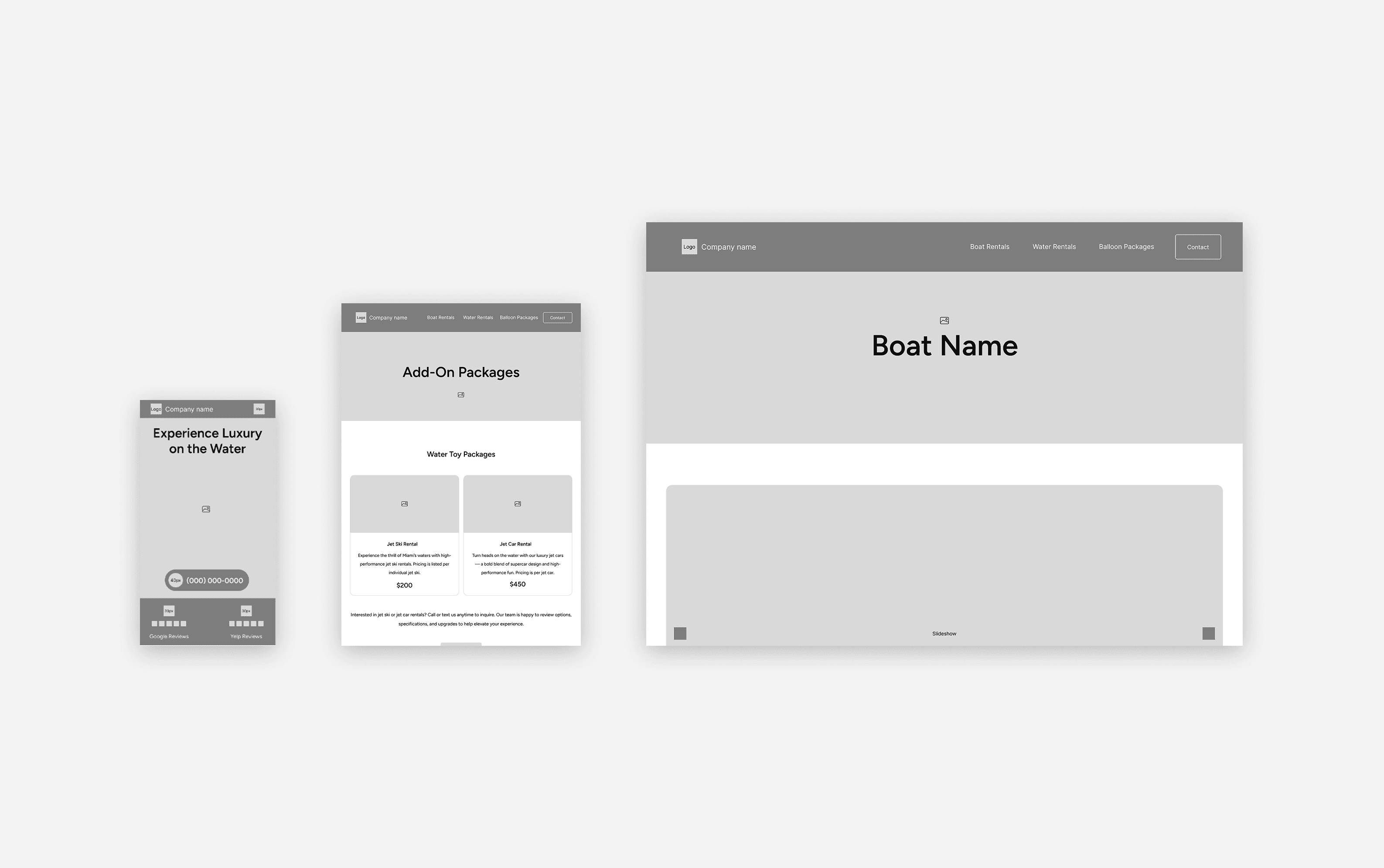 Even though the final site was built on a Framer template, I recreated the layout in Figma to test information hierarchy, grouping, and flow without affecting the live experience. This allowed me to experiment with boat cards, add-ons, pricing, and CTAs in a safe environment, identify areas needing clarity, and iterate quickly on UX decisions. The mid-fidelity wireframes served as a sandbox bridging strategy and execution, ensuring structural changes were purposeful and user-centered.