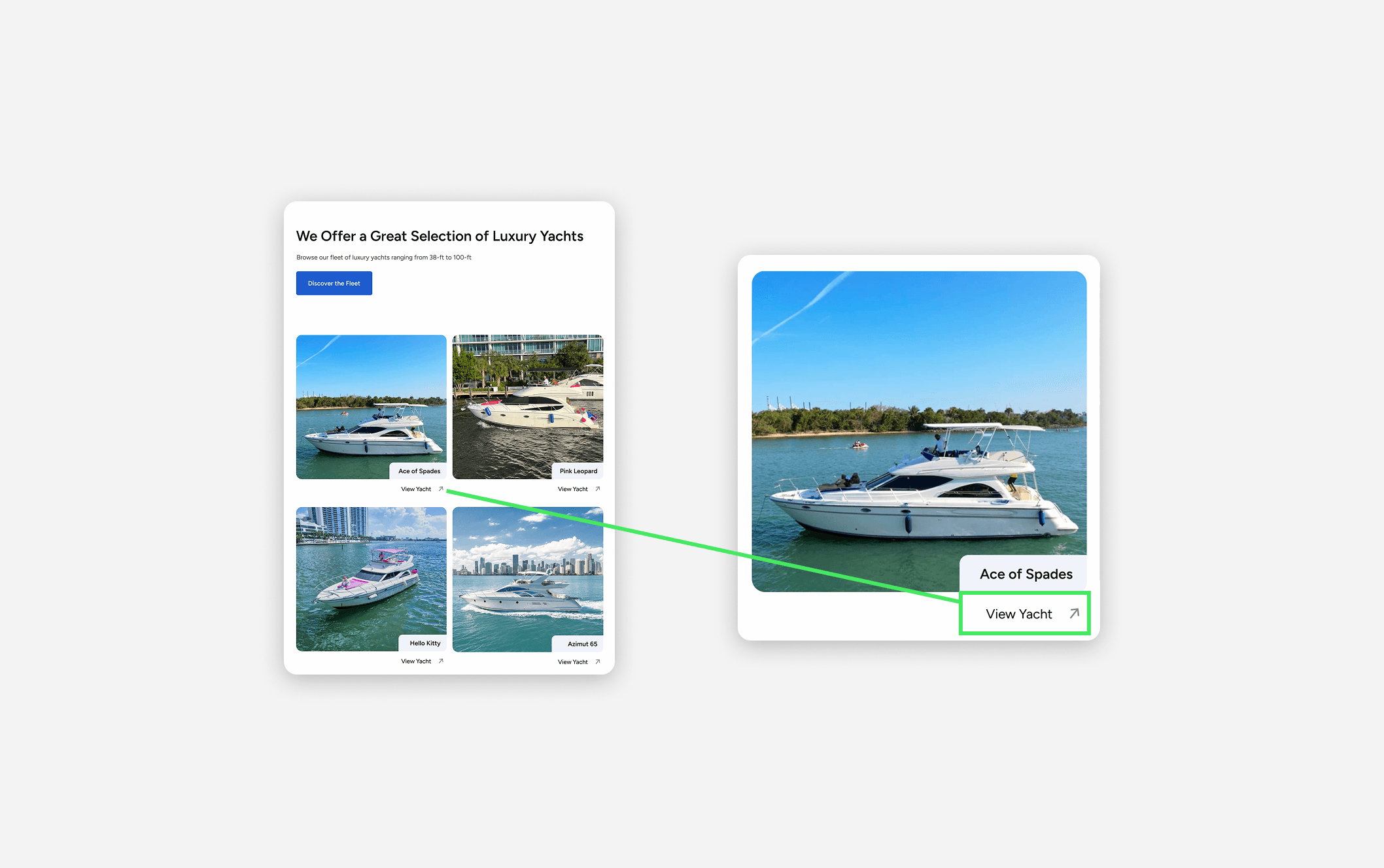Clickable boat cards were not always recognized. Adding a clear “View Yacht” CTA strengthened interaction cues and helped users engage with individual listings confidently.