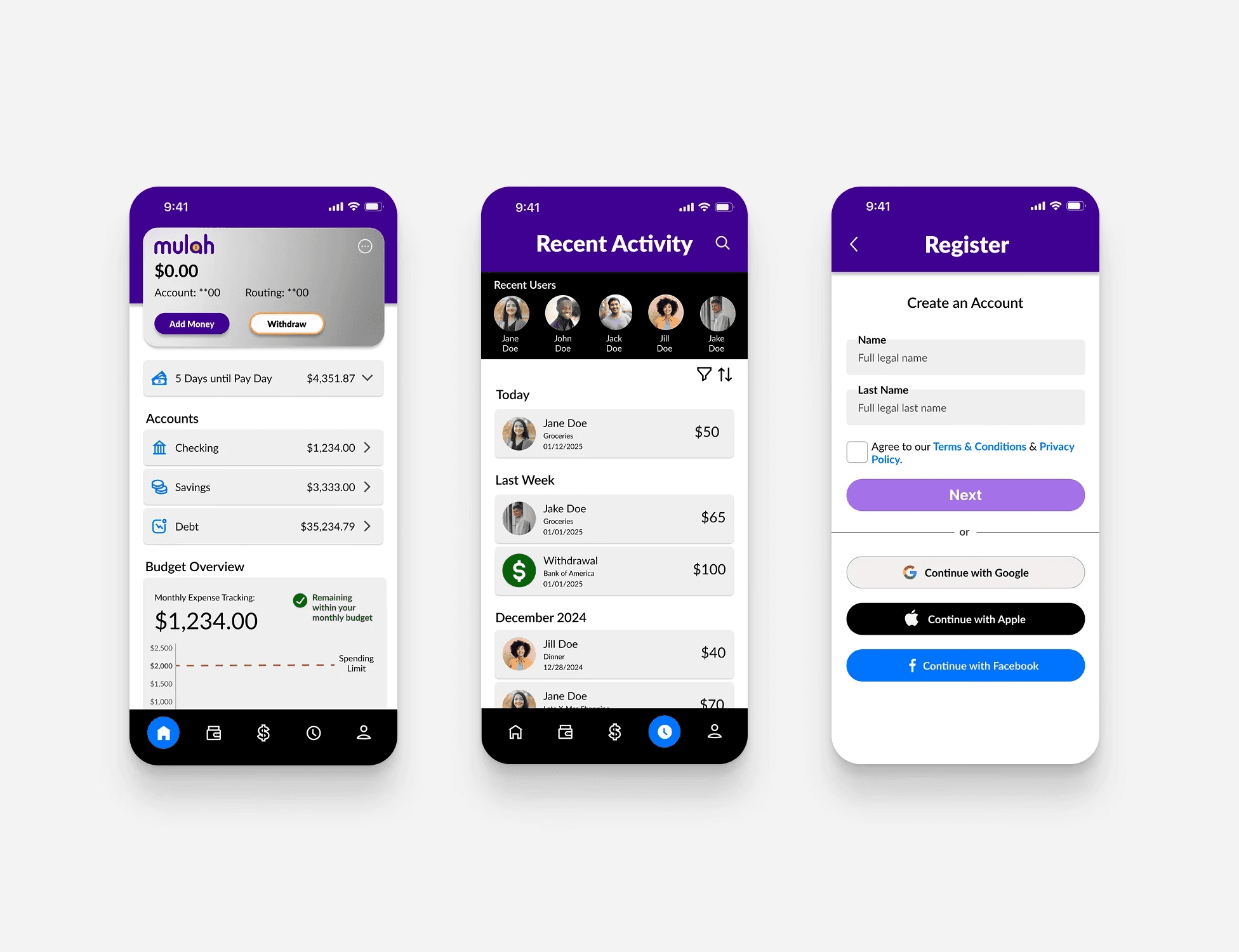 Mulah is an all-in-one finance app designed to help users budget, save, send money, and manage their financial lives in one simple place.